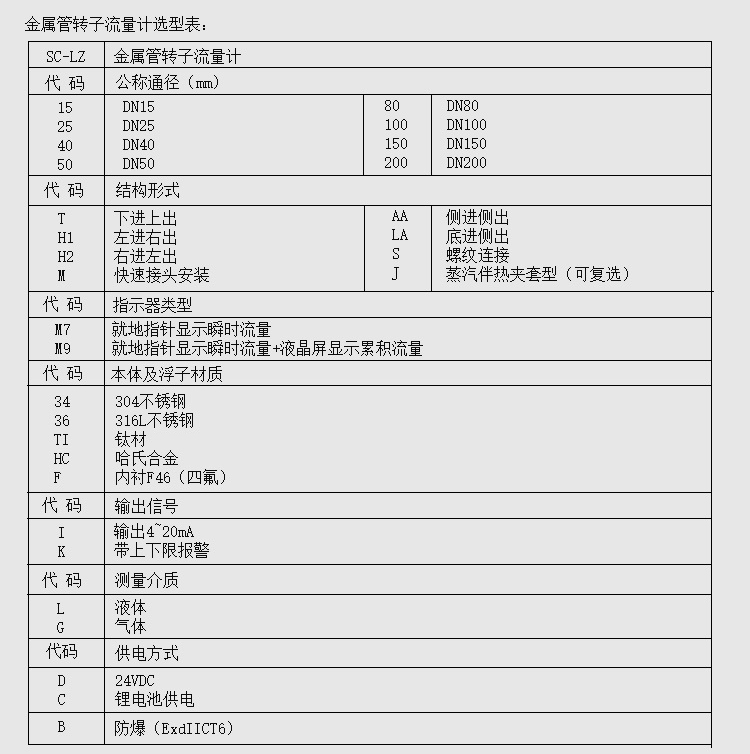 - SC-LZ系列金屬管轉子流量計又叫金屬管浮子流量計,是一種變面積式流量計,用于測量管道、流體的流量等多種介質的儀表,適用于測量液體,氣體。特別是工藝管道的小流量測量。金屬管轉子流量計有指示型、電遠傳型、防腐型、高壓型、夾套型、防爆型,具有4-20mA的標準電流信號輸出和現(xiàn)場指示。累積,數(shù)字通訊,現(xiàn)場修改測量參數(shù)
