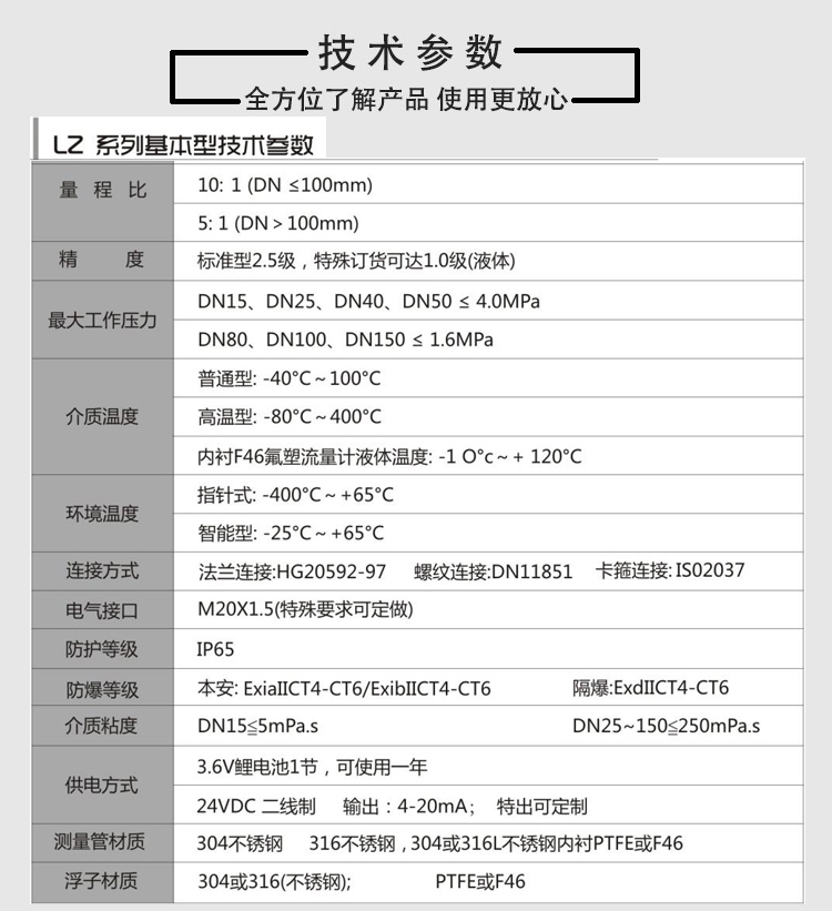 金屬管轉子流量計有指示型、電遠傳型、防腐型、高壓型、夾套型、防爆型,具有4-20mA的標準電流信號輸出和現(xiàn)場指示。累積,數(shù)字通訊,現(xiàn)場修改測量參數(shù),不同的供電方式功能,帶有磁性過濾器和特殊規(guī)格品種,廣泛應用于,石油、化工、發(fā)電、制藥、食品、水處理等。復雜,惡劣環(huán)境條件,及各種介質條件的流量測量過程中。